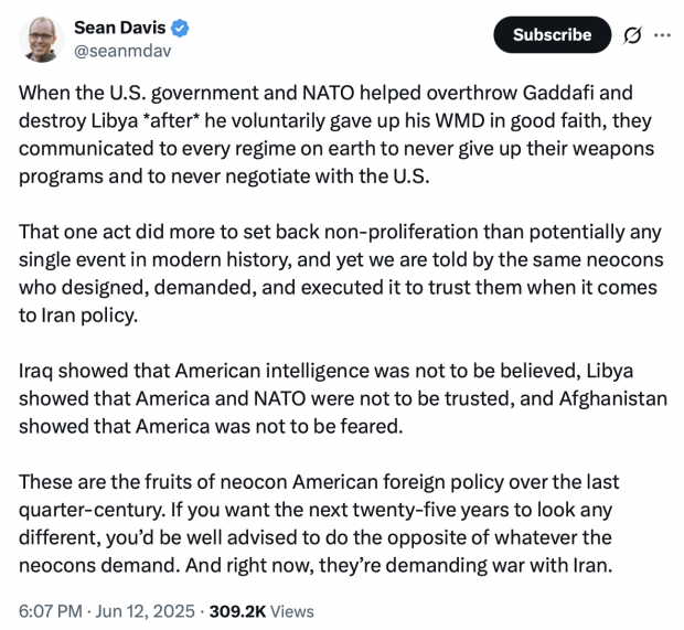 Sean Davis of The Federalist represents that part of the American right that has grown weary of the war propaganda and profiteering, and explains why nobody in his right mind would trust the American regime at this point: