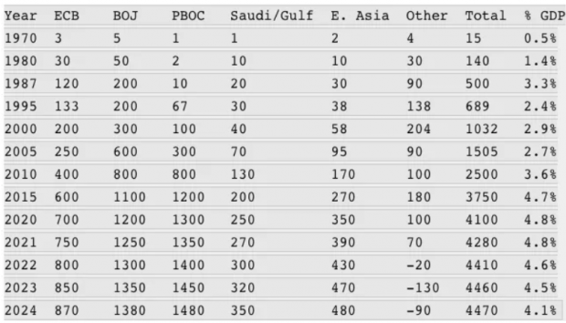 Global Central Bank Holdings Of US Government Securities, 1970-2024 (billions)