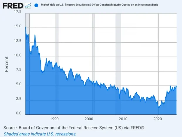 30-Year US Treasury Bond Yield, 1981 to 2025