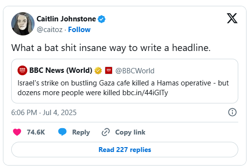 Part of the problem is how normies who don’t follow this stuff closely cannot believe Israel could be as evil as we’re saying it is. They’re often like “Oh yeah right, they’re just killing civilians because they’re evil and want Palestinians to die.” Which would make sense as an objection if you hadn’t been following Israel’s pattern of behavior from day to day and weren’t familiar with the way Israelis talk about Palestinians whenever they’re speaking to each other in Hebrew instead of addressing the western press.