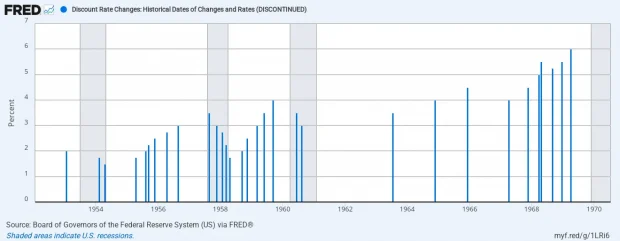 Finally, there is another crucial aspect of the Martin era that militates in favor of firing the entire FOMC and abolishing any further buying and selling of debt and other securities in the open market by the Fed. To wit, the overwhelmingly favored policy tool during the Martin era was the Fed’sdiscount rate, which is inherently a tool of old-fashioned central banking, not modern day monetary central planning.