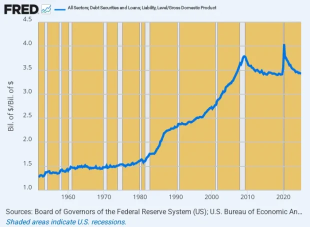 National Leverage Ratio (Debt-to-GDP), 1951 to 2025