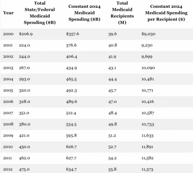 Total Federal/State Medicaid Spending and Recipients, 2000–2024