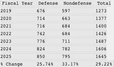Needless to say, the $1.926 trillion level in place in 2024 wasn’t nearly enough for the Congressional Dems, and, actually the RINOs and UniParty Republicans who are waiting in the wings to capitulate to the Dem health care demands after a few weeks of performative whining about “runaway” spending and deficits.