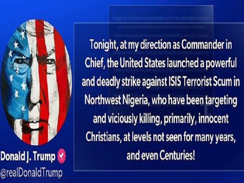 Trump surprised the world by announcing on Christmas that the US bombed “ISIS Terrorist Scum in Northwest Nigeria”, whose government cooperated with the operation. This follows him drawing global attention to the slaughter of Christians in Northern Nigeria last fall, which was analyzed here at the time. It was concluded that the US “might want the right to occasionally strike Islamists there, at least one military base, Nigeria distancing itself from BRICS, and Nigeria playing the role of the West’s enforcer”.