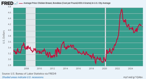 CPI for Chicken Breast, 2006 to 2025