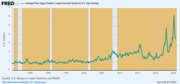 CPI Per Dozen For Grade A Eggs, 1980 to 2025