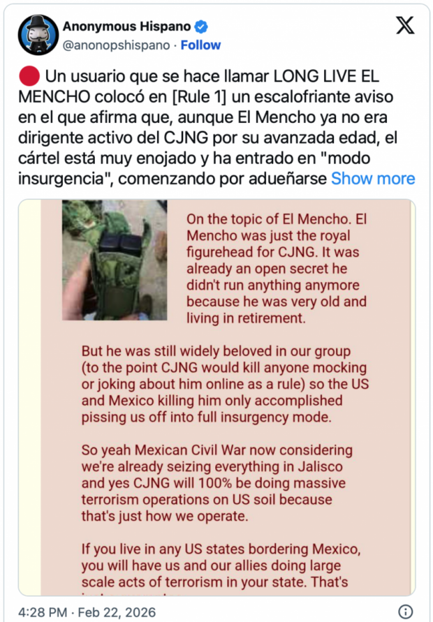 The JNGC is already quite upset with the Trump administration, because it turns out that the CIA was heavily involved in locating El Mencho…