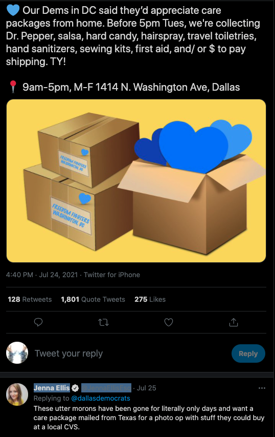 The Maskless Commie Brigade from Texas is begging for regular folks to send them care packages.