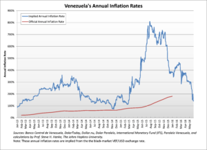 This picture shows inflation from 2013 to mid-2016. (Source.) There were two hyperinflationary episodes in which inflation rates reached over 300 percent and 800 percent per year.