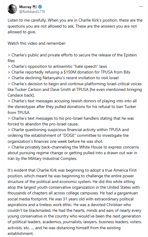 Note the display name of the individual who posted this on X is Murray and his username or handle is @rothbard1776.